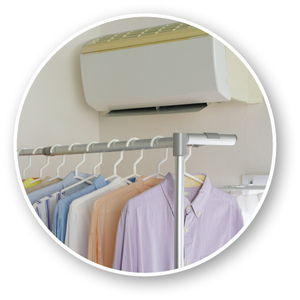 上段の高さを調節してエアコンを活用すれば、より効率良く乾かせます。