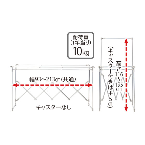 ●使用時サイズ:幅93〜213×奥50・65・80×高116〜195(キャスターなし)・121〜200(キャスター付き)cm