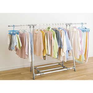 軽いから屋外・室内の両使いもラク。2枚用はアームを広げればさらにたっぷり干せます。