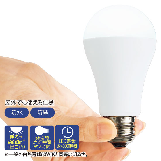 停電の時に限って懐中電灯が見つからない。そんな突然の停電でも慌てる必要はありません。本品は日常使いしながら自動充電でき、停電を感知すると自動で非常点灯に切り替わる蓄電型電球。さらに照明器具から外して、そのまま懐中電灯やランタンにもなるという優れモノ。備えあれば憂いなしです。