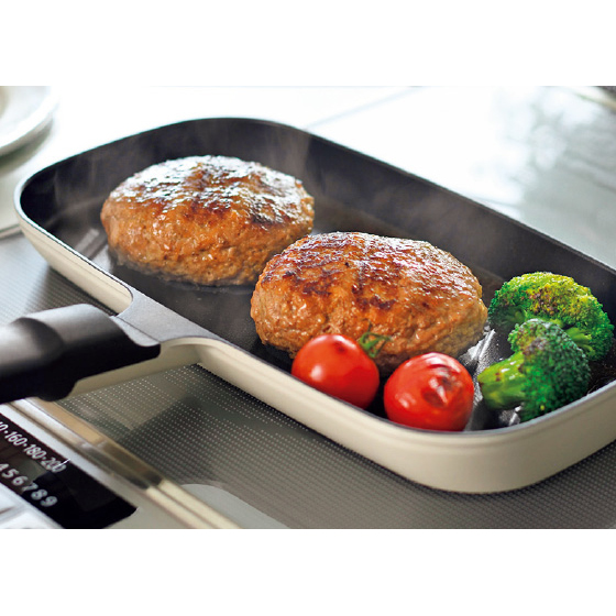 掃除が面倒な魚焼きグリルのせいでお魚料理から遠のいているならこちらを!少人数の調理にちょうどいいコンパクトさながら、厚手の底が熱をムラなく伝え、旨味を閉じ込めるので魚だけでなく肉調理もジューシーに。アルミ合金製で軽く、フライパンのように取り回せてサッと洗えます。幅が広いのでお弁当のおかずなどワンパン調理にも活躍します。