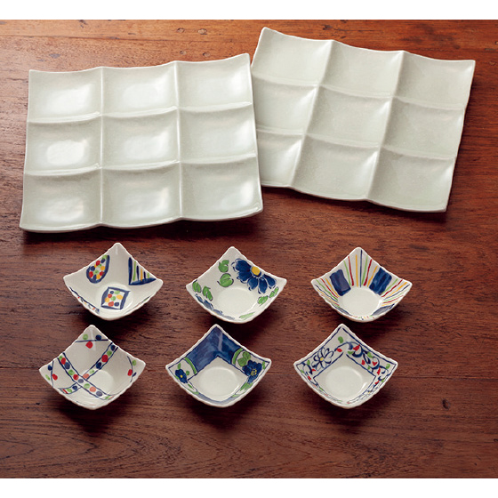 ●サイズ:仕切皿=23×23×高2cm、豆鉢=7×7×高3cm