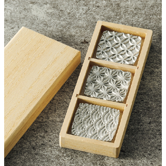 ●サイズ:本体=幅3×奥3×高0.5cm(1個当り)、箱=3柄組/幅13×奥6×高2cm、5柄組/幅21×奥6×高2cm
