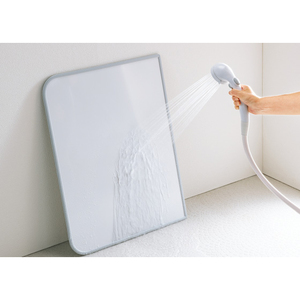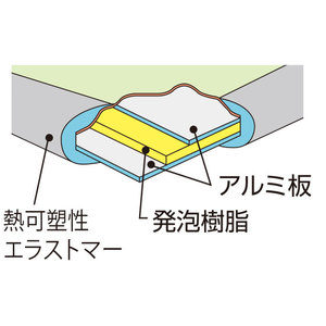 水や汚れに強いアルミ板で発泡樹脂をはさみ、耐久性に優れています。縁のゴムは表面がやわらかく、内側はカビが侵入しにくい2層構造。