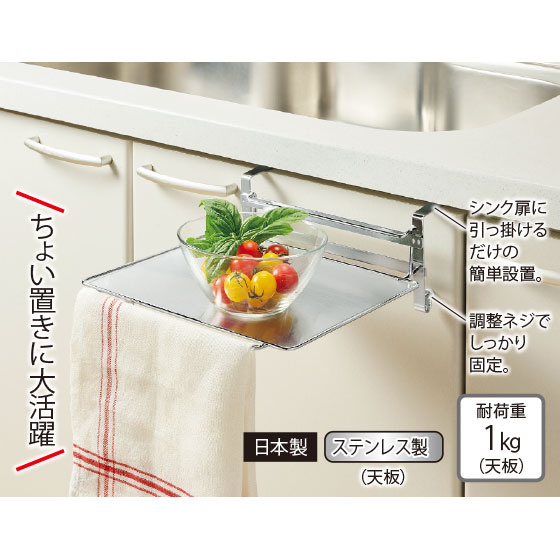 シンク扉に引っ掛けるだけの簡単設置。使わない時はたためる。