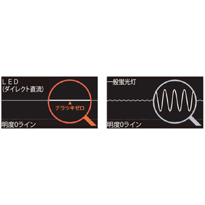 光のチラツキがないダイレクト直流点灯方式。真下だけでなくまわりも均一に明るく照らします。