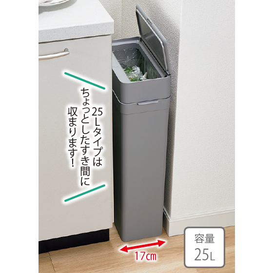●材質:25L/本体・袋留め・蓋・蓋枠・スイッチ=ポリプロピレン、45L/本体・袋留め・蓋枠=ポリプロピレン、蓋・スイッチ・バネカバー=ABS樹脂、シリコンパッキン=シリコン樹脂、巻きバネ・板バネ=ステンレス鋼