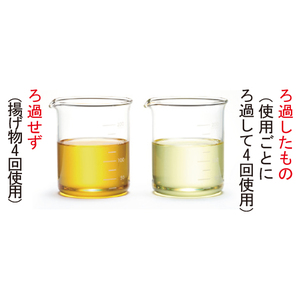 活性炭に加え、業務用などで使われている、油の酸化を抑制する脱酸ろ助剤を配合。