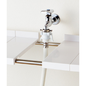 取り外し自由な棚板21枚付き。蛇口を避けての設置もできます。
