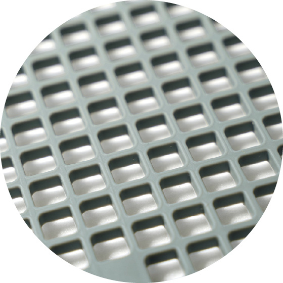 水が切れやすく、はねにくい凹凸構造。耐熱性があり、湯切りもOK。