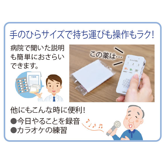 録って聴くだけ、メモ代わりにも。音声ガイド付きで誰でも簡単操作!