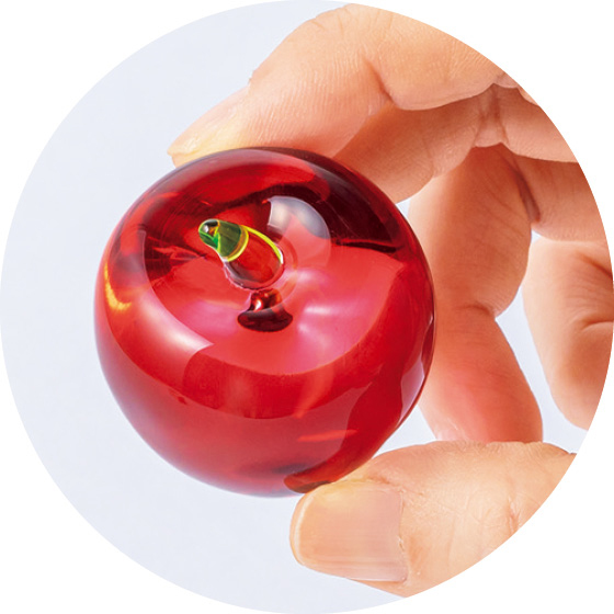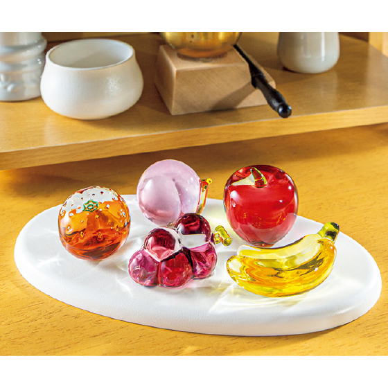 キラッと輝くガラス製。ハンドメイドで着色後、色を焼き付けました。コンパクトサイズで場所を選ばず置けます。