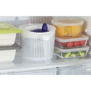野菜の水気を切ってそのまま冷蔵庫で保存可能なコンパクト設計。