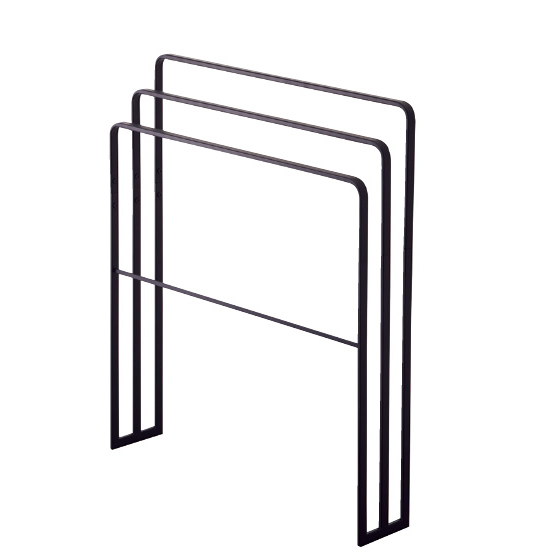横から掛けられるので使いやすい。コンパクトだが、大きなバスタオルも1番高い所に掛けられ機能的。場所も取らずおしゃれで大満足。