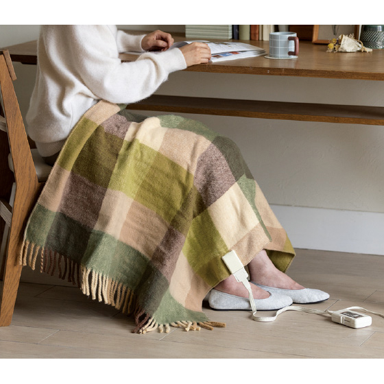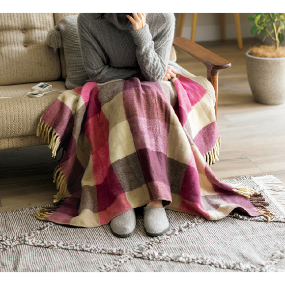 大判だからソファに敷いたり、肩に掛けても。コードを外せば丸洗いできます。