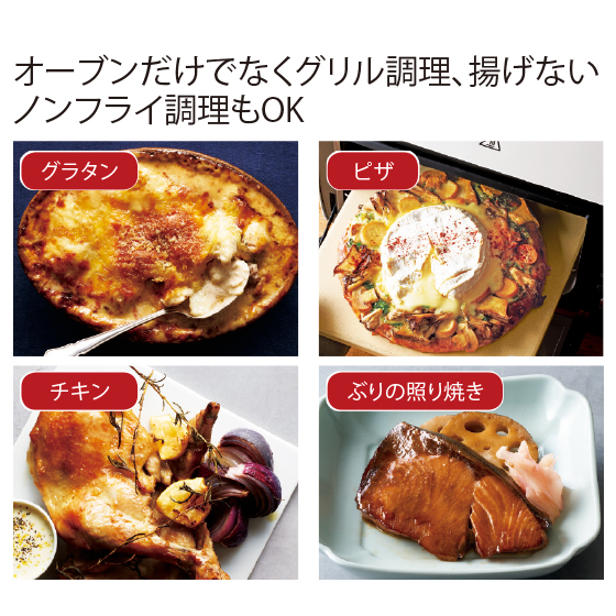 独自の開発による機能で、庫内の隅まで温度の安定した熱風がまんべんなくまわります。例えば鶏肉や魚の皮目をパリッと焼き上げたり、スポンジケーキをふわりと立ち上がらせてくれたりと、このオーブンならではの仕上がりが楽しめます。