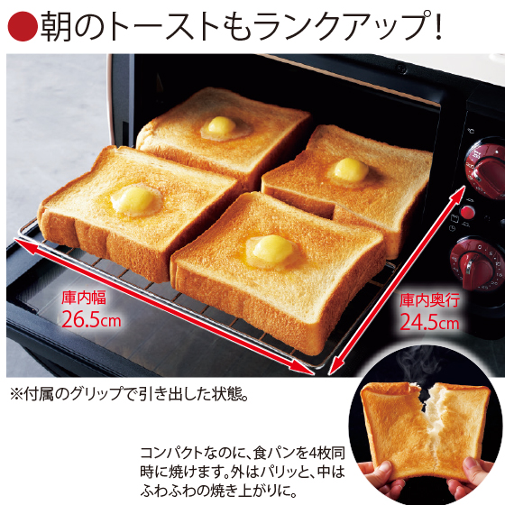 ●庫内サイズ:幅26.5×奥24.5×高11.5cm(上下ヒーター間)