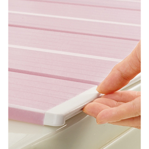 浴槽の端にスッキリと折り重ねて、コンパクトに収納できます。