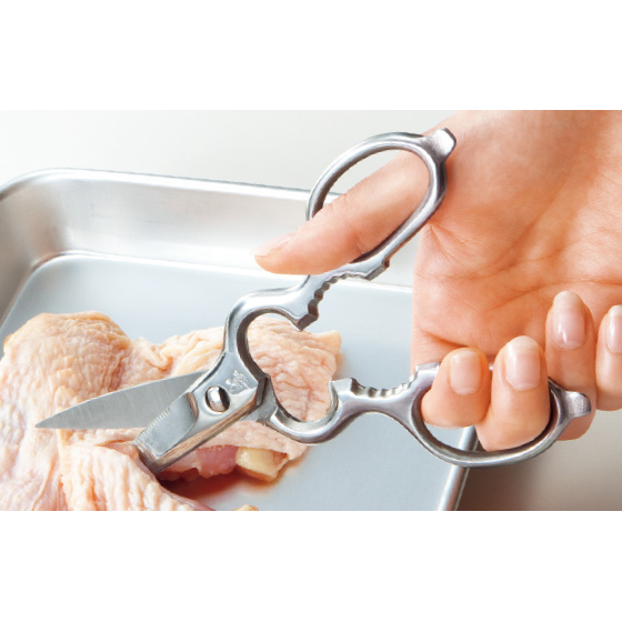 切れ味がよく丈夫で、肉や魚などの食材の下ごしらえにも。サビにくく、水気の多いキッチンでも長く使えるオールステンレス製です。