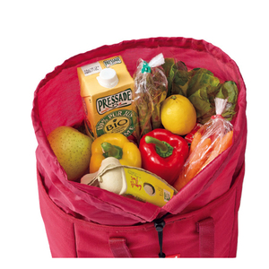 口部が大きく、出し入れがスムーズ。巾着仕様だから、荷物が多少飛び出しても閉じられます。