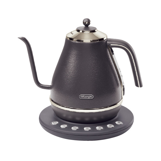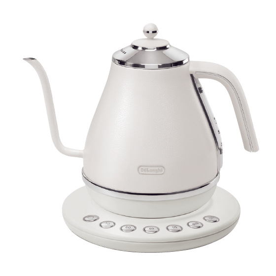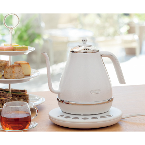 細口で注ぐ量も思いのまま。5段階の温度設定が可能。玉露や煎茶、ハーブティー、コーヒーなどに適した温度でおいしさを引き出します。さらに保温機能で適温をキープ。