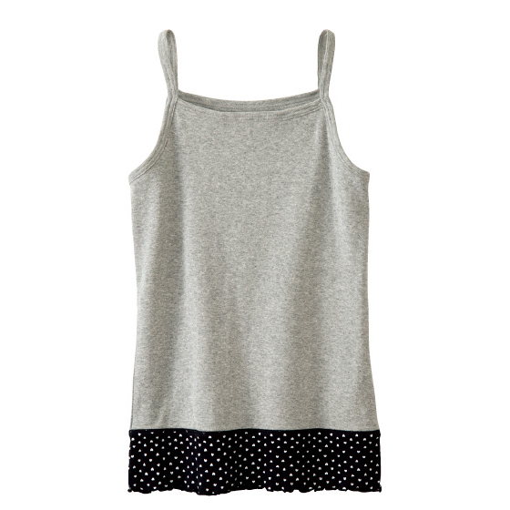 さりげなくバストをカバー。裏側の当て布端にゴムなどを使用せず、やさしい肌触り。