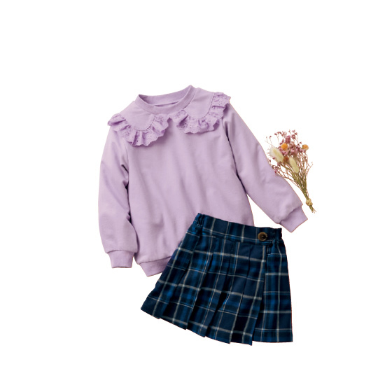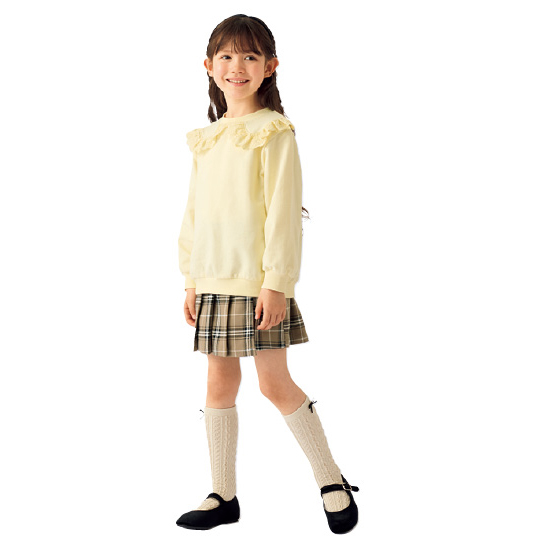 ●素材:綿100%(ニット、ミニ裏毛)、リブ部分=綿95%・ポリウレタン5%、レース部分=綿100%(織物、綿レース)