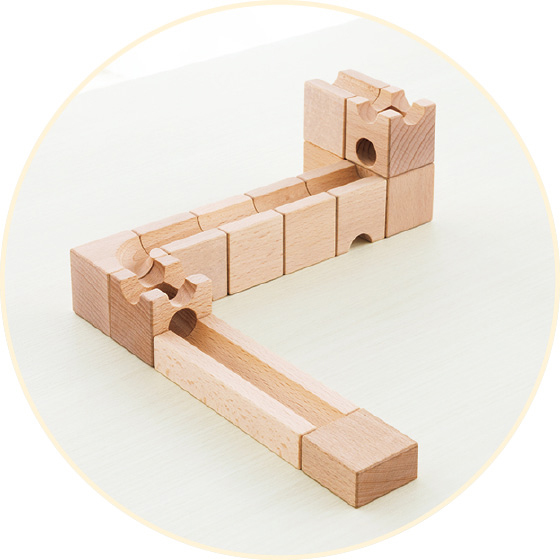 ブロックを積み上げてルートを作り、ビー玉を転がして目的地にゴールさせるのが基本ルール。遊んでいるうちに自然と仕組みを理解して、プログラミング学習の一環に!