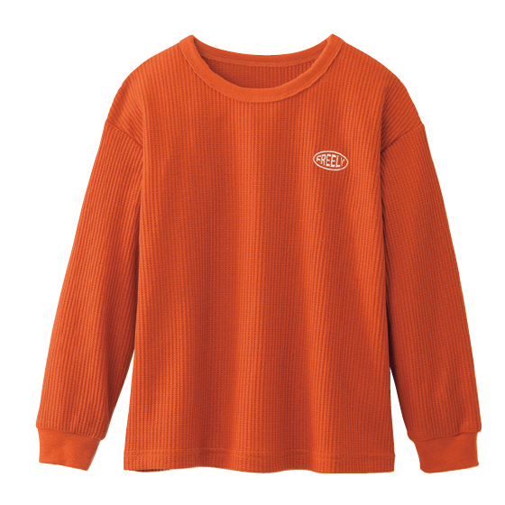 胸の刺繍がアクセント。表情のあるワッフル素材のロンT。