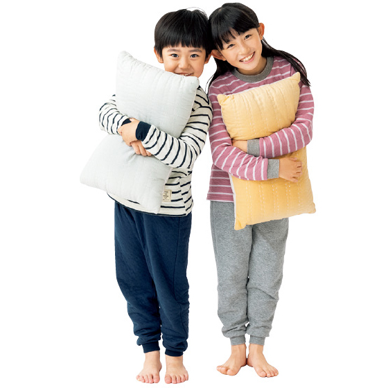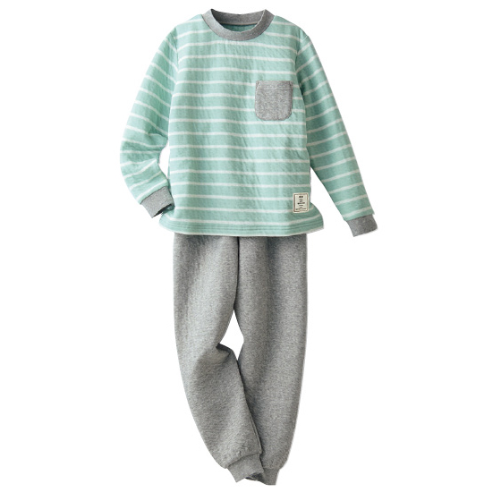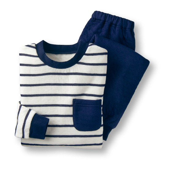 綿100%の生地で薄い中わたをはさんだニットキルト仕立て。暖かな空気を含んだ、軽やかな着心地でリラックス。