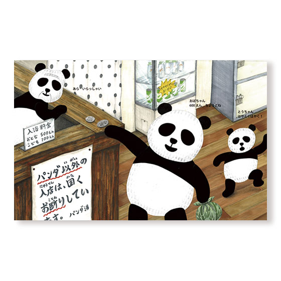 「パンダ以外入店お断り」の銭湯・パンダ湯。やってきたパンダの親子は、“服”を脱ぎはじめ…。「え−、そうだったのか!」思わず大笑いしてしまう予想外の展開。tupera tuperaのユーモアいっぱいの絵本。