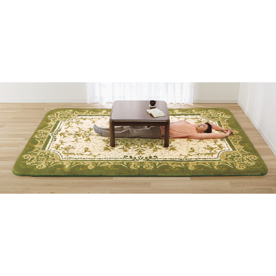 ※洗えない敷物のお手入れ方法:軽い汚れは中性洗剤を浸して固く絞った布でたたくように落としてください。※生地幅の関係上ハギ(つぎ目)が入ることがございます。また裁断の都合により柄の出方が多少異なりますので、あらかじめご了承ください。