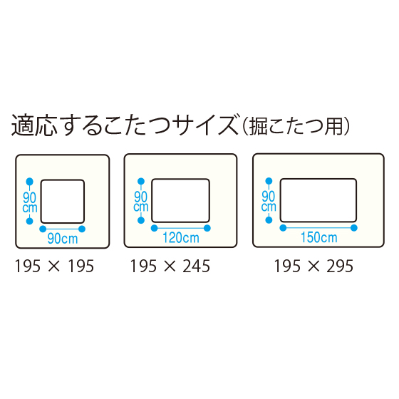 ●素材:表側=ポリエステル100%、裏側=ポリエステル100%(すべりにくい加工)、中材=ポリエステル100%(固わた、195×195=4.2kg、195×245=5.2kg、195×295=6.3kg(共通)、215×315=7.4kg)