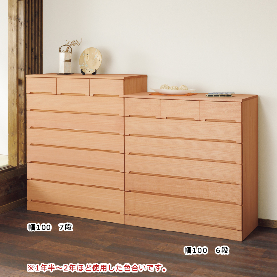 柿からつくられる天然塗料で表面を仕上げ、耐久性を高めるとともに防虫効果もあるといわれています。着物収納にも便利な幅100。幅75は衣類収納におすすめです。