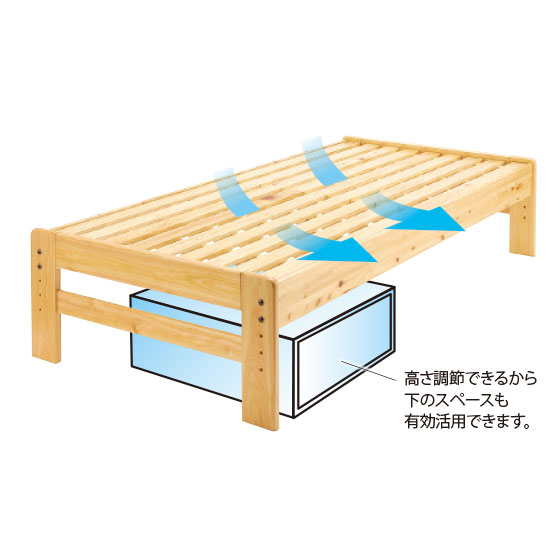 通気性がよいひのきのすのこ板を縦に配置して頑丈に仕上げました。
