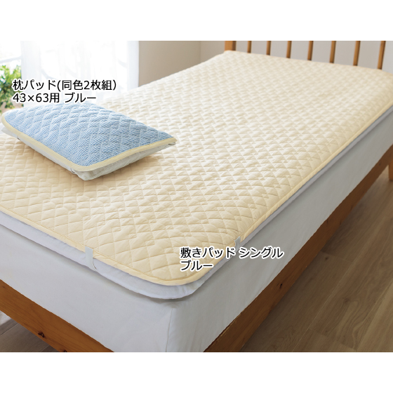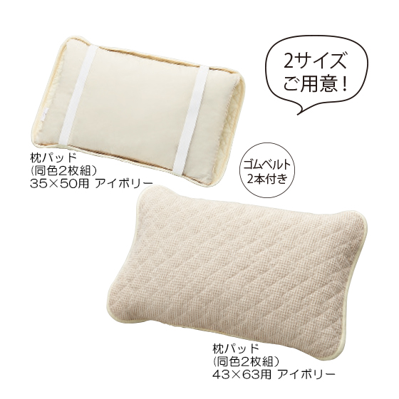 ●敷きパッドは裏4隅にズレ防止のゴムベルト付き、枕パッドはゴムベルト2本付き