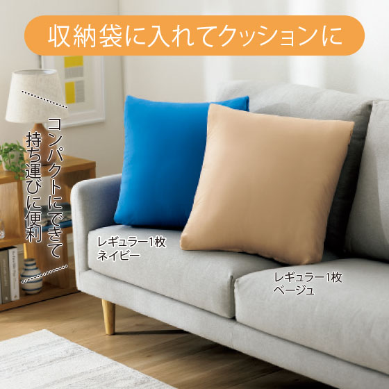 ●素材:表側=ポリエステル100%、裏側=毛羽部/綿100%、グランド糸/ポリエステル100%、詰めもの=ポリエステル100%、収納袋=ポリエステル100%