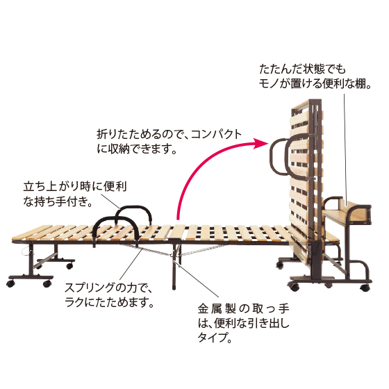 ●サイズ:幅105×長215.5×高51(床面高30.5)cm、床面=幅90×長197cm、収納時=幅105×奥52×高113.5cm