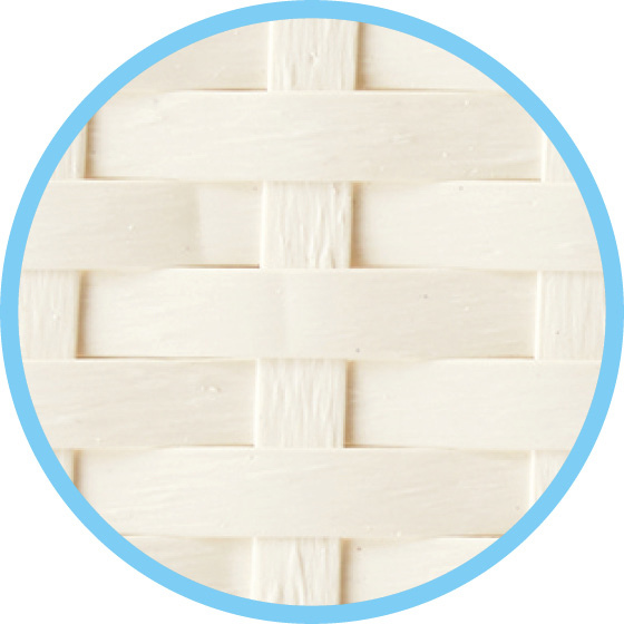樹脂を編み上げたプラウィッカー素材は通気性がよく、汚れたら水拭きOK !