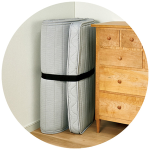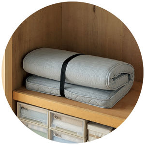 面テープ式の留めバンド付きで、押入れにも収納可能。