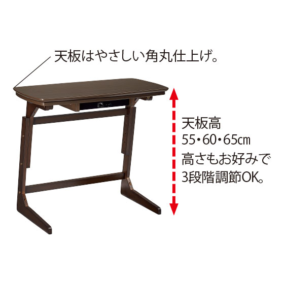 冬のデスク作業中も、足元まであったか。ふとんを外せばミニデスクに。3段階に高さ調節できます。