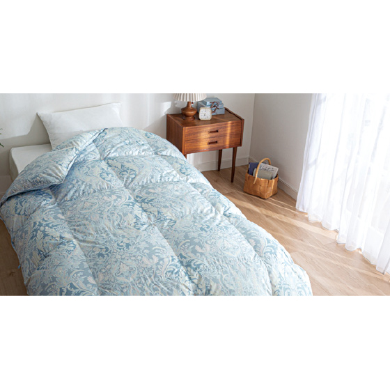 ●素材:側地=ポリエステル85%・綿15%、詰めもの=ダウン85%・フェザー15%(再生羽毛使用)、ダウンパワー(DP)350cm3/g相当(計1.1kg)