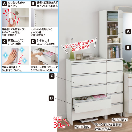 ●サイズ:幅30(幅30)・44.5(幅45)・59.5(幅60)・75(幅75)×奥30×高100.3(高100)・180(高180)cm