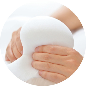 頭を支えるだけでなく「首を休められる枕」にしたいと考え、頭部と首部で全く別の役割がある枕を開発しました。こだわったのが中材。特許配合技術「フレフィーマ(R)」を使用し、素材の割合を頭部と首部で大きく変えました。