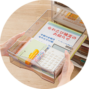 書類や趣味の小物などがすっきり片づく。整理収納しやすく、中が見えて探しやすい!