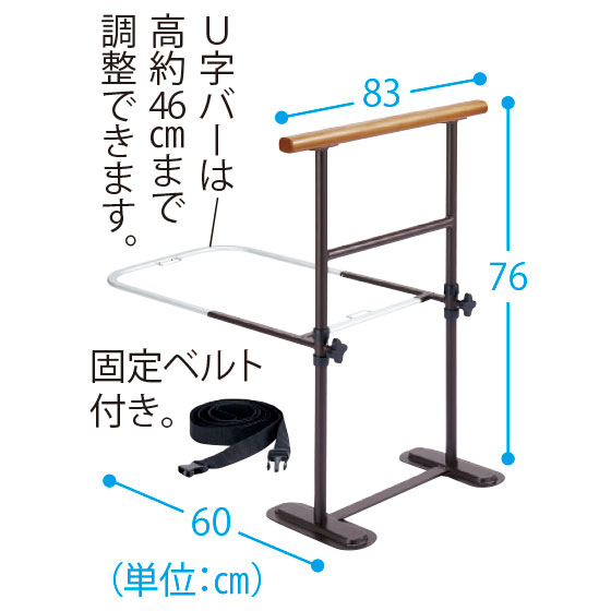 ●材質:フレーム=スチール(粉体塗装)、手すり=天然木、U字バー=アルミニウム