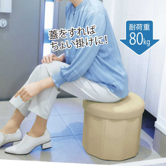 ちょこんとたたずむスツール。中に履物などを立てて、こっそり収納できます。玄関の隠し収納のほか、リビングの小物にも。