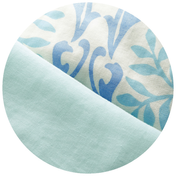 側地は吸水性・通気性のよい綿ガーゼ。洗うほどにふんわりやわらか、肌になじみます。