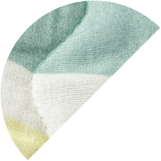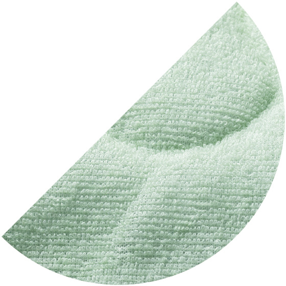 表面は吸汗性、通気性のよい綿100%の2重ガーゼ素材。肌面はソフトでふんわりとした、心地よい感触の綿混素材。