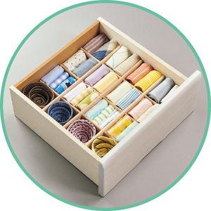 上段右側の引き出しにはひとつひとつ取り出しやすい仕切り板。